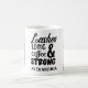 Cette fabuleuse tasse d'artiste maquillage présente un maquilleur avec l'image textuelle "Lashes Long & Coffee Strong". Ajoutez votre nom pour une touche personnelle. Vous pouvez modifier le maquillage en cliquant sur "Personnaliser" et "Modifier à l'aide de l'outil de conception".