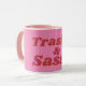 Mug drôle pour toutes les filles de la campagne qui vivent à fond dans le parc de trailers. Texte rétro rose Trashy & Sassy sur fond rose
