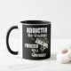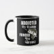 Drôle basse pêche tasse de café pour le pêcheur avide. Addicé à la pêche, forcé au travail! Cette tasse comporte une basse à grande bouche qui saute hors de l'eau à la recherche d'un leurre de pêche.