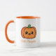 Une tasse avec un citrouille mignon dans le style Kawaii et un texte personnalisable : parfait pour prendre votre café sur Halloween!