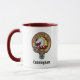 Clan Cunningham crête badge entouré d'une sangle et boucle sur l'arrière - plan tartan. Texte personnalisé des deux côtés.