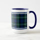 Tasse à café avec tartan de famille pour Clan Forbes, un motif écossais traditionnel en vert de forêt et bleu royal aux accents noir et blanc. Choisissez entre deux tailles et cinq styles.
