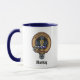 Clan MacKay crête badge entouré d'une sangle et boucle sur l'arrière - plan tartan bleu. Texte personnalisé des deux côtés.