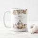 Coca chaud blanc et crème ou chocolat Noël Grand Café Mug dans le style classique de la ferme moderne avec pin, fleurs blanches de Noël, lanterne et un oiseau mignon. Customiser facilement le texte - Kate Eden Art