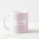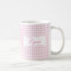 Bring a touch of timeless, rustic charm to your morning coffee or afternoon tea! This personalized mug features a vibrant pink and white gingham (checkered) pattern that evokes feelings of cozy farmhouse kitchens and sunny summer picnics.
