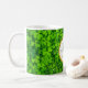 Une tasse customisée avec un design printanier frais avec un champ de trèfle vert luxuriant avec de petites gouttes d'eau dainty. Personnalisez avec votre nom et votre monogramme initial au centre sur un cadre blanc avec une bordure en feuille d'or FAUX.