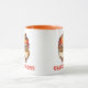 Un poulet à l'air fâché avec l'expression 'gribouiller' sur une tasse de café