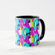 Stylish CMYK Funky Retro Mug pour les graphistes, les imprimeurs et les étudiants en art. Le design montre CMJN en typographie rétro funky dans cyan, magenta, jaune et noir (clé) dans un motif tout-en-un. Un peu différent de votre tasse à café CMYK moyenne !