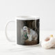 Un beau blanc avec le cocker de taches brunes a photographié dans un arrangement rustique. Pour les amants de toute la race ceci fera un cadeau merveilleux pour n'importe quelle occasion.