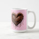 Délicieux coeur chocolat au lait de fusion sur arrière - plan rose (ou votre choix). Texte : Je t'aime et je nous aime.