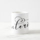Drapeau grec dans un coeur, avec Santorin en caractères scriptés, tasse de café.