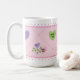 Offrez le cadeau d’amour de cette Saint-Valentin avec cette tasse de café personnalisable qui comprend des coeurs de bonbons colorés avec des messages personnalisés, des inséparables sucrés, des pois ludiques et des bordures de bord à coquilles Saint-Jacques branchées. Faites-le plus spécial en customisant les cinq zones de texte pour créer un cadeau unique pour votre amour, petite amie, femme ou mère. Ce don réfléchi apportera des sourires et des coeurs chaleureux. Idéal pour célébrer l'amour avec style !
