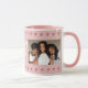Coeurs roses Meilleurs Amis Typographie 2 Photo Mug. Coeurs roses dessinés à la main avec des points sur arrière - plan rose et typographie blanche tendance. Ajoutez vos meilleures photos d'amis. Vous pouvez modifier le texte.