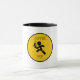 A playful illustration of a stick figure running while carrying a steaming cup of coffee. The text "COFFEE" is at the top and "RUN" at the bottom, indicating the urgency of getting that essential cup of coffee.