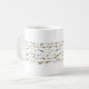De multiples images de petits colibris enveloppent cette pure tasse blanche.