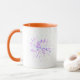This colorful abstract neon splash coffee mug features a vibrant modern art design on a dark background.