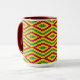 Colorful African Kente pattern in bright yellow, maroon and green.
