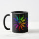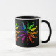 Colour wheels. Three images are repeated around the mug, against a black background. Standard colours for a colour wheel are depicted as stylized leaves gathered by the stems at the centre. Great mug for the visual artist ***Part of coordinated set - BKM2c.