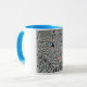 Une tasse à café combo personnalisée avec un arrière - plan fractal artistique en noir et blanc.