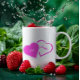 Mug de la Saint-Valentin avec de belles images de cœurs roses et blancs. Les images, le fond et le texte peuvent être personnalisés. Œuvre originale de W.B.