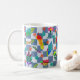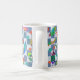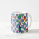 Dale un toque de color y elegancia a tus momentos de café o té con esta hermosa taza decorada con un diseño moderno. Su fondo de cuadrados en tonos azules aporta profundidad y armonía, mientras que los motivos de hojas y flores superpuestos en diferentes colores crean una composición única y llamativa.