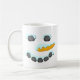 Le visage classique du bonhomme de neige avec nez de carotte et yeux de charbon, crêpé dans la neige.