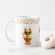Elégante et belle tasse avec chat et points d'or confetti décoration sur arrière - plan blanc. Le design or n'est qu'une image. Profitez de cette tasse de luxe.
