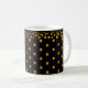 Elégante et belle tasse avec un point doré confetti décoration sur arrière - plan noir. Le design or n'est qu'une image. Profitez de cette tasse de luxe.