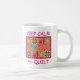 Montrez votre amour de la courtepointe avec cette tasse à café en blocs colorés et amusants qui proclame "Conserver le calme et la courtepointe". Ce design est original de l'art de la courtepointe et des blocs de courtepointe patchwork préférés, ainsi que des blocs uniques, dont le cabine de journal, le pinwheel, l'étoile et le carré, dans un bloc carré. Le mot "courtepointe" est facile à changer pour un autre mot de votre choix. Le design des courtepointes est dans des couleurs vives et dynamiques d'orange, jaune, rose, turquoise et vert citron pour une belle palette de couleurs. Entièrement personnalisable pour personnaliser. L'art de la courtepointe est l'art original de Phyllis Dobbs, concepteur de tissus et de courtepointes. Cet art est disponible sur d'autres produits et dans plusieurs arrière - plans de couleur et est également disponible sur plus Garder Calm produits avec différentes surfaces composées. Plus de produits sont disponibles dans Phyllis' BusinessWithFlair store.