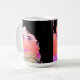 Very colorful drawing of woman's face on mug. Black and pink with green. Contemporary.