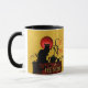 Mug avec "Chat noir et Thé noir" est basé sur les affiches de chat noir de Théophile Steinlen pour le club "Le Conversation Noir". Ce design présente son célèbre chat noir assis sur un mur en brique recouvert de lierre avec une grande tasse de thé et une théière. Il y a une pleine lune rouge vif.