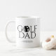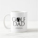 Tasse à café cool tendance avec en tête "GOLF DAD" de premier plan dans la typographie minimaliste et une silhouette de golfeur intégrée au centre du texte. Zones de texte personnalisables sous en-têtes. Idée cadeau parfaite pour votre golfeur préféré. Idéal pour Noël, Fête des Pères, anniversaire ou tout autre jour.