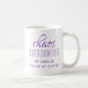 Coordinateur Chaos Typographie violette Personnalisée Coffee Mug présente un design simple du texte "chaos coordinateur (votre nom) alimenté par le café" dans un script amusant de calligraphie violette avec votre nom personnalisé ci-dessous. Personnalisez en modifiant le texte dans la zone de texte fournie. Parfait pour cette maman occupée, enseignant, chef d'équipe sportive ou patron de travail.