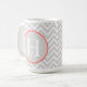 Savourez votre café ou votre thé avec une tasse de café Coral Chevron Monogram. Le design de la tasse à café est orné d'un motif de chevron gris clair avec un emblème circulaire dessiné dans le corail. Autres articles disponibles avec cette conception aussi. Contactez-moi directement pour obtenir de l'aide sur la personnalisation.