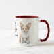 "Les baisers du chiot de Corgi réparent tout" déclare cette tasse pour le propriétaire du Chien de Corgi. L'image de chaque côté est le portrait d'un adorable petit chiot Corgi. Les images et le texte sont placés sur un arrière - plan blanc parsemé de confettis dorés.