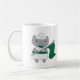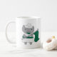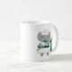 Aimes-tu les mignonnes tasses ? Cette tasse présente un mignon chaton gris portant l'uniforme d'un groupe de marche vert et blanc tout en tenant un drapeau vert.