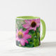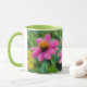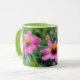 Cette tasse fleurie présente ma photo originale de fleurs roses de Zinnia dans un jardin. J'ai traité ma photographie avec un style peint pastel à l'huile pour un style artistique. La poignée et l'intérieur de la tasse sont vert clair pour compléter l'oeuvre d'art. Ce sont des tasses de 11 onces, juste la taille idéale pour votre café ou thé maison - ou même du chocolat chaud! Il ferait un grand cadeau et vous pouvez mettre des paquets de café, des sachets de thé ou du chocolat chaud à l'intérieur. Une autre idée de cadeau est de mettre un petit plante dedans pour le rendre spécial pour votre être cher. Un grand cadeau pour un amoureux de la nature ou un amoureux des fleurs.
