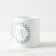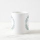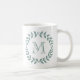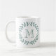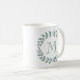 Ajoutez une touche élégante et personnalisée à n'importe quelle boisson avec cette tasse à café verte menthe et blanche. Le design présente des feuilles de laurier modernes et une initiale de typographie élégante. Le monogramme au centre est simple à personnaliser et peut être différent à l'avant et à l'arrière. Cadeau souvenir de fête de mariage élégant, il complète la verdure chic du mariage. Convient aux demoiselles d'honneur, garçons d'honneur, porte-fleurs, porte-alliance, mère et père de la mariée et du marié, etc.