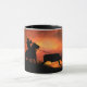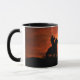 Un cow-boy corde un bâton grincheux au coucher du soleil. Une tasse à café très cool dans l'ouest du ranch.
