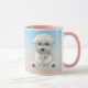 Mug Cozy Plush Moment: Smiling Bichon Hugging Mini Pup