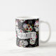 Un design de tasse à café coloré pour les festivités du Jour des Morts, avec une variété de crânes à sucre décoratifs avec des accents de fleur et tourbillon sur un arrière - plan noir en option. La bannière et la couche de texte 'Feliz Dia de los Muertos' peuvent être supprimées pour utiliser cette conception pour d'autres occasions ou tous les jours. Cherchez ID725 pour voir d'autres choix de couleurs et produits avec ce motif amusant.