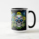 Amateurs d'Ufologie art. Bleu, jaune violet et noir extraterrestre crâne art floral. Mélange pour un passionné d'Ufologie.