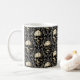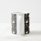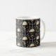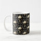 Des crânes beiges anciens et usés au milieu d'un motif damassé beige et gris argenté créent une tasse à café gothique spectaculaire. Parfait pour quiconque embrasse le côté sombre de la vie.