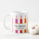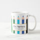 Mug moderne pour enseignants avec crayons de couleurs arc-en-ciel. Personnalisé avec le nom de l'enseignant et le niveau de classe qu'ils enseignent. Fait un cadeau merveilleux.