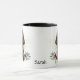 Un beau portrait d'aquarelle d'un chien noir et tan Cocker Spaniel émerge d'un bouquet rouge pourpre et rose sur cette tasse. Derrière l'image du chien se trouve un spray de confettis d'or. L'image apparaît sur les deux côtés de la tasse, avec votre nom en noir entre eux. Si vous préférez, vous pouvez supprimer le texte en désactivant le champ modèle.