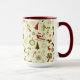 Un design de Noël rétro amusant dans un style de croquis à l'ancienne dans les tons muets de rouge, vert et marron ; mettant en vedette le Père Noël dans son traîneau, rennes, arbres de Noël ornés, sapins, bas, sucres de canne, ornements, bonhommes de neige, et plus !