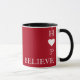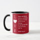 Moderne, élégant rouge et blanc LOVE HOPE CROIRE Mug personnalisé avec les mots HOPE et CROIRE sur le devant, plus un extrait de 1 Corinthiens 13:7-8 - L'AMOUR NE MANQUE JAMAIS sur le dos. Sur le devant, le O in HOPE est remplacé par un coeur. Sur le dos, le O dans l'AMOUR est remplacé par un coeur, et il y a Écriture PERSONNALISABLE de 1 Corinthiens 13:7-8 suivie d'un NOM DE PLACEHOLDER. Vous pouvez le remplacer par votre version biblique préférée et votre nom. Un cadeau idéal pour les Valentins, les Anniversaires et Noël. Le jeu de couleurs est la typographie BLANCHE sur un arrière - plan DEEP RED moderne. Autres couleurs disponibles.