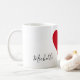 Create your personalized red heart love mug set with your custom names. When held together, these fun mugs make a heart, so they are perfect venin pour Valentine's day or anniversaries. Color of the heart can be customized to your liking.