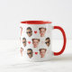 Valentine's Day mug for a girlfriend or boyfriend, personalized with 2 cut-out face photos of the couple. Design with romantic little red hearts.