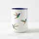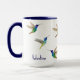 Unique custom mug for hummingbird lovers featuring hand-painted watercolor Golden-tailed Sapphire Hummingbirds.